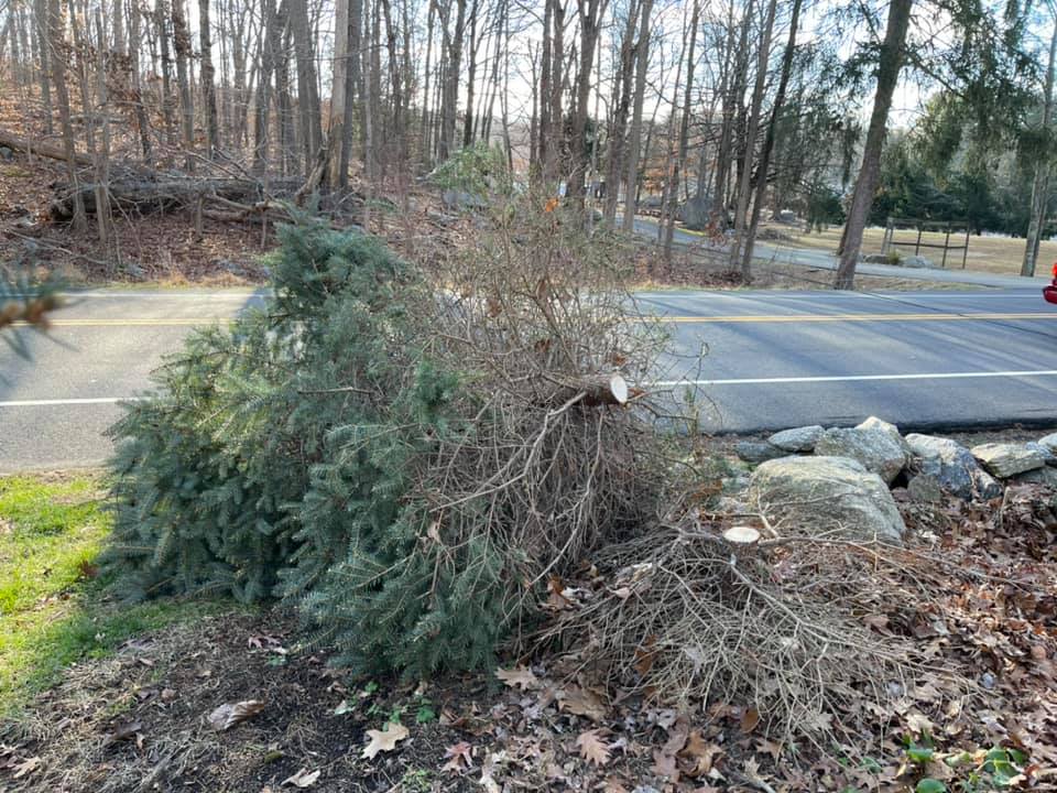The blue spruce that was cut down is on the…