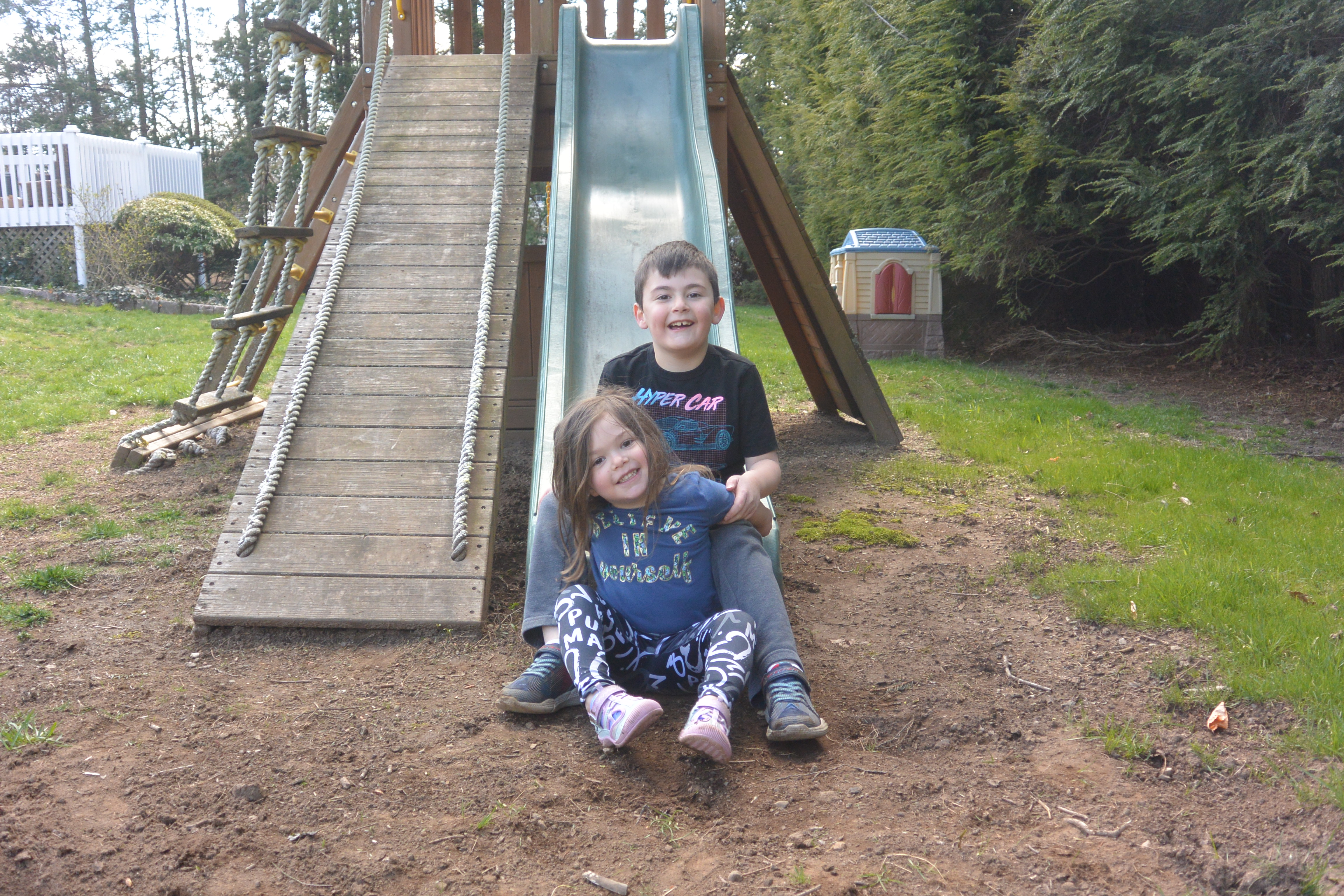 First grader Henry Theriot and preschooler Morgan Theriot give the…