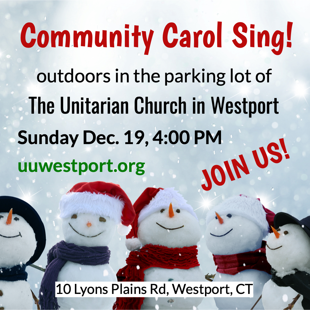 Outdoor Carol Sing at UU Westport this Sunday, 4-5 PM